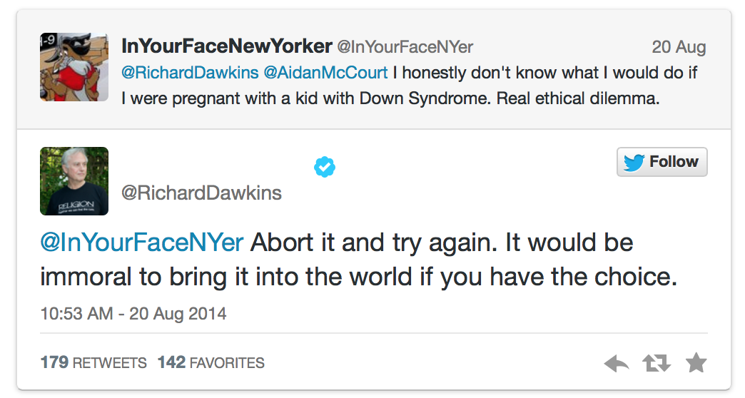 Oh, and what happens if someone who actually believes this stuff, who really does think that this is moral and sensible—yes, please do re-read the Dawkins quote—finds himself in power? You know where I’m going. Here is a quote from Adolf Hitler: